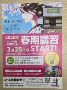 こんにちは、岡崎市明大寺町にある「たつみ進学ゼミ」です!